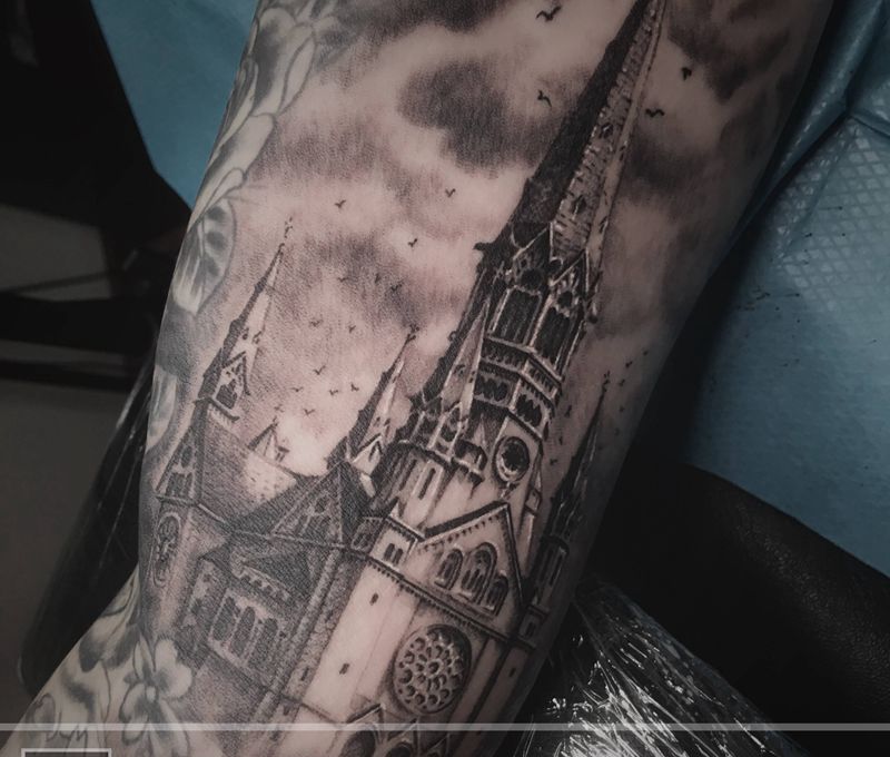 当前位置: 首页 >重庆市纹身店-V+tattoostudio纹身图案>教堂纹身图片_手臂欧美写实纹身图案