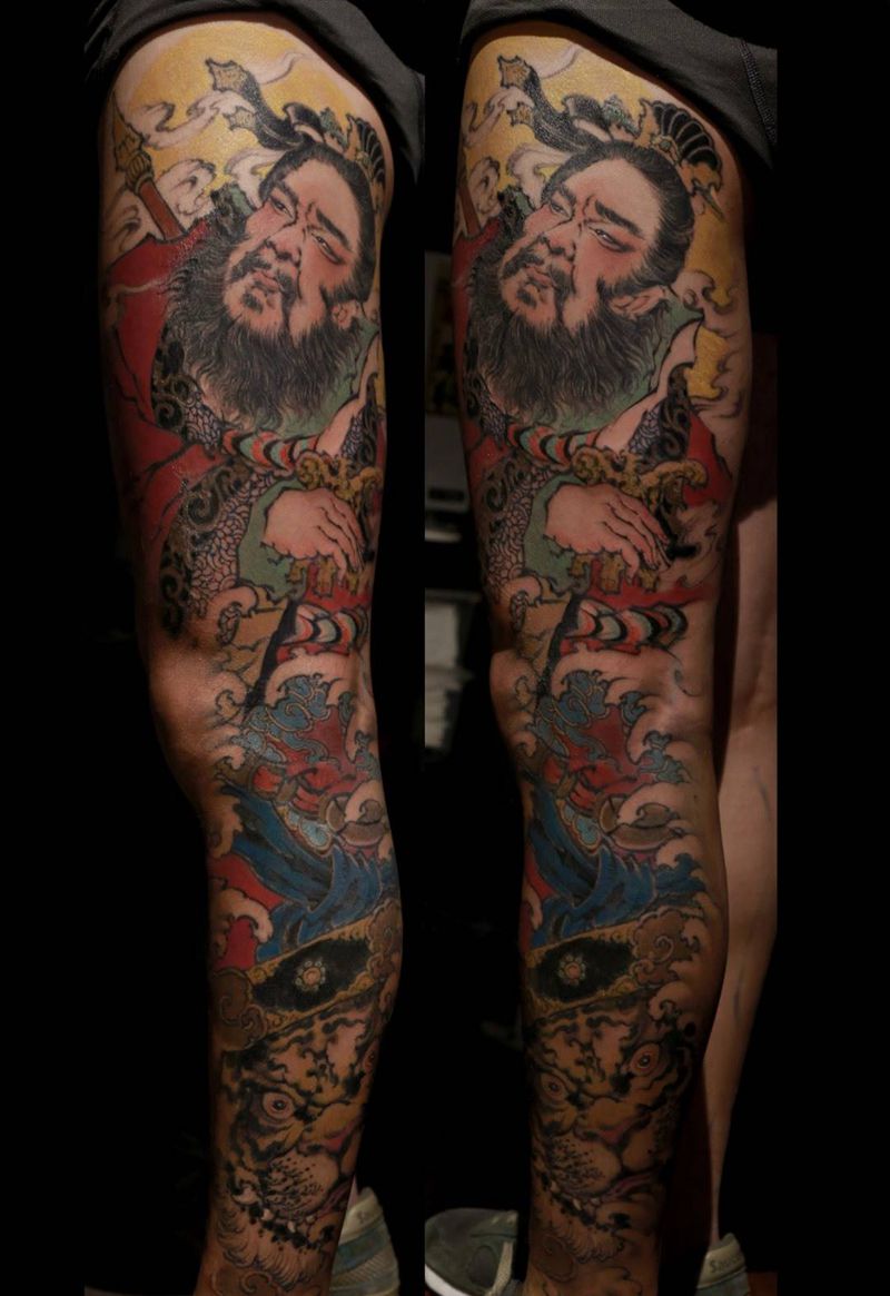 • T网红王老大花腿龙纹身图片_腿部新传统纹身图案