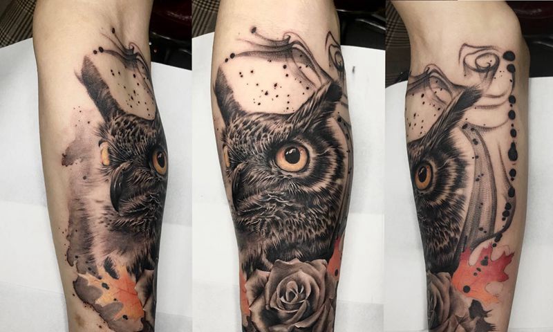当前位置: 首页 >重庆市纹身店-風林刺青纹身图案>猫头鹰纹身图片_手臂欧美写实水墨猫头鹰玫瑰花纹身图案