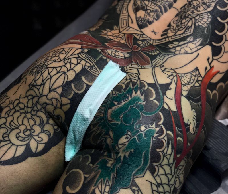 • T网红王老大花腿龙纹身图片_腿部新传统纹身图案