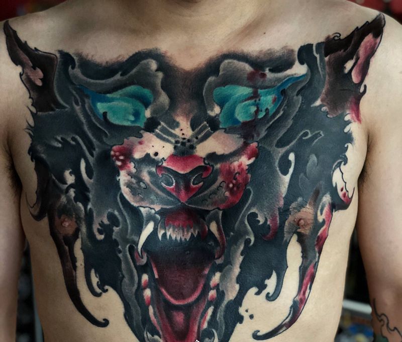当前位置: 首页 >重庆市纹身店-鬼绣刺青纹身图案>滴血狼头纹身图片_胸部New School狼鬼绣文化纹身图案
