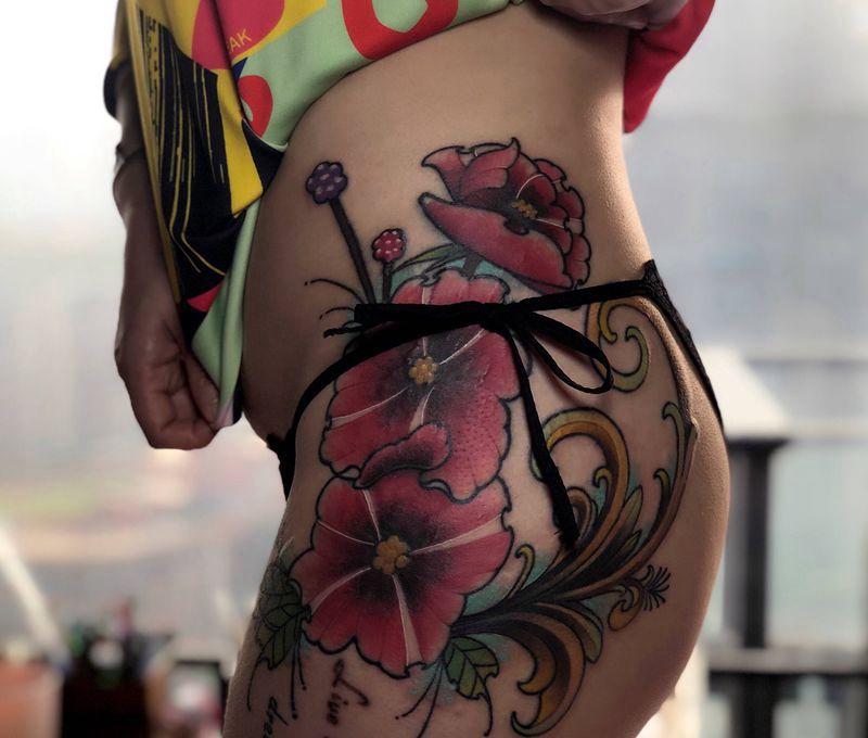 • 女性大花胸纹身_43张霸气漂亮的女性大花胸纹身图案作品