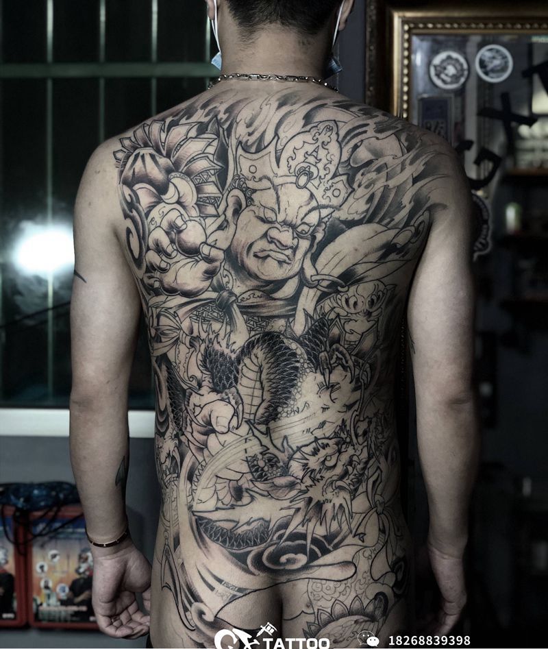 四大天王纹身图片_背部新传统四大天王鬼绣文化纹身图案