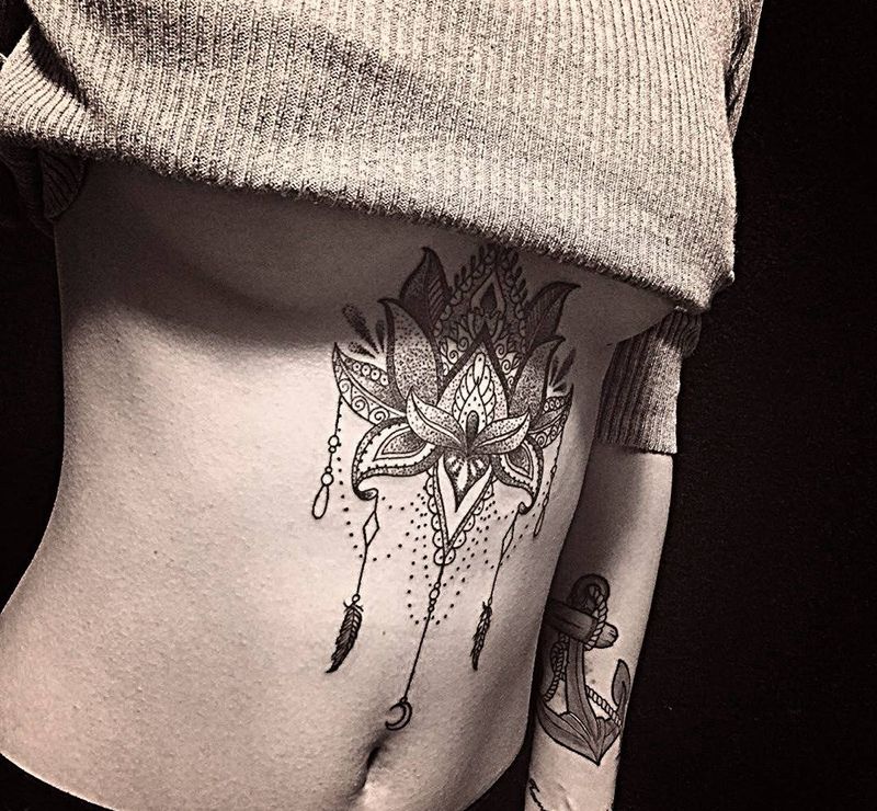 • 时尚性感的腹部莲花纹身图案