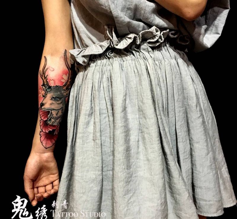 当前位置: 首页 >重庆市纹身店-鬼绣刺青纹身图案>鹿纹身图片_成品手臂欧美清新动物植物刺青纹身图案