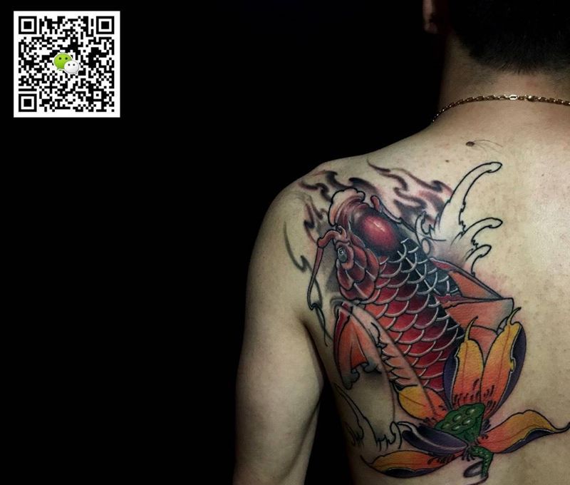 鲤鱼纹身图片_成品背部传统动物刺青纹身图案