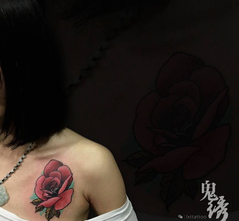 • 女性大花胸纹身_43张霸气漂亮的女性大花胸纹身图案作品