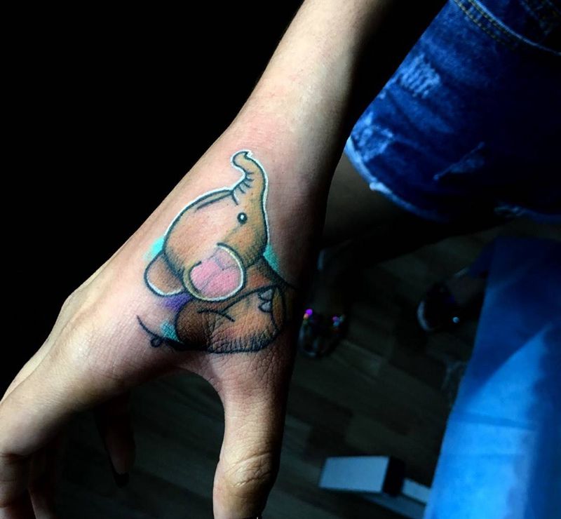 • 手背潮流时尚的玫瑰花眼睛纹身图案