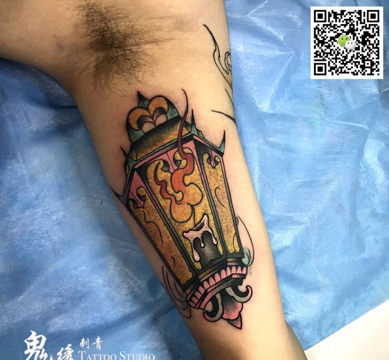油灯纹身图片_成品手臂欧美静物刺青纹身图案