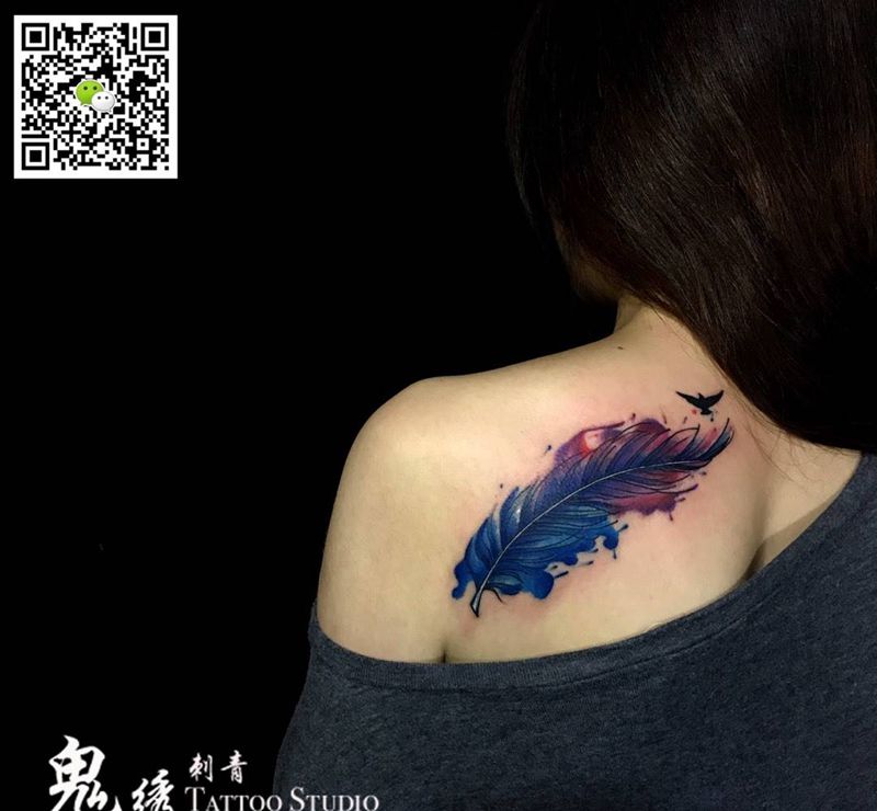 当前位置: 首页 >重庆市纹身店-鬼绣刺青纹身图案>水彩羽毛纹身图片_成品背部清新静物刺青原创纹身图案