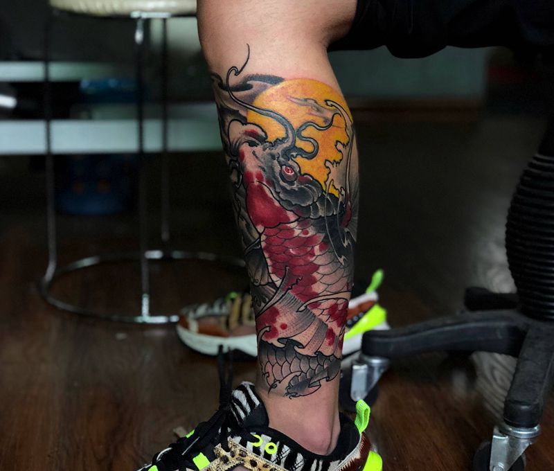 当前位置: 首页 >重庆市纹身店-鬼绣刺青纹身图案>锦鲤纹身图片_腿部新传统鲤鱼鬼绣文化纹身图案