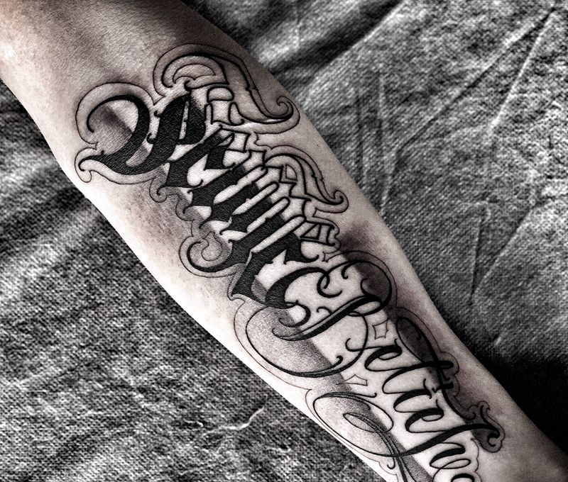 当前位置: 首页 >重庆市纹身店-鬼绣刺青纹身图案>奇卡诺纹身图片_手臂花体字鬼绣文化纹身图案
