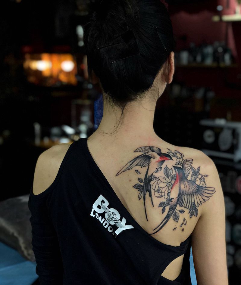 当前位置: 首页 >重庆市纹身店-鬼绣刺青纹身图案>燕子纹身图片_肩部背部水墨水彩纹身图案