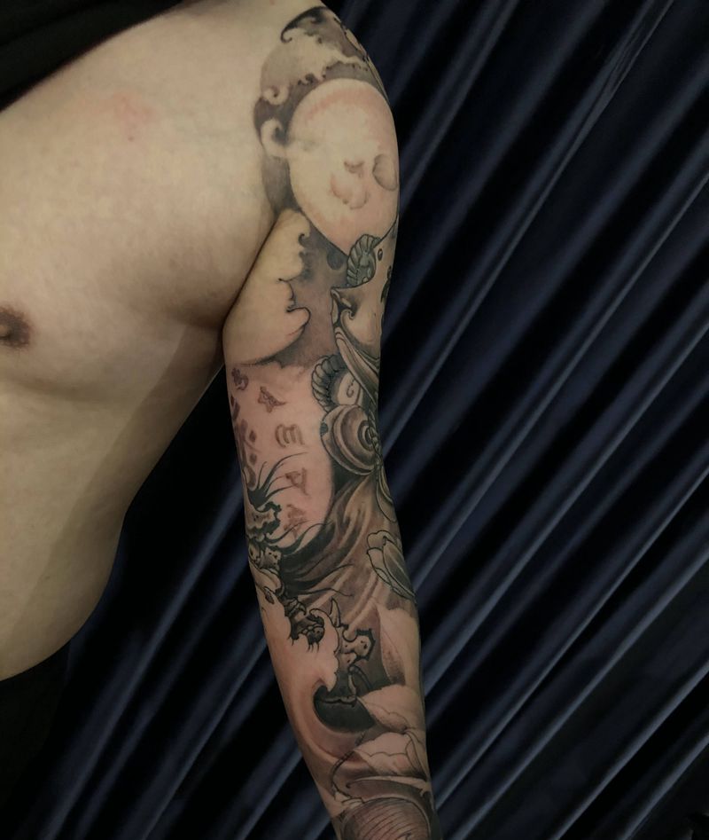 当前位置: 首页 >重庆市纹身店-涅.刺青纹身图案>黑灰花臂纹身图片_颈部肩部新传统Old School纹身图案