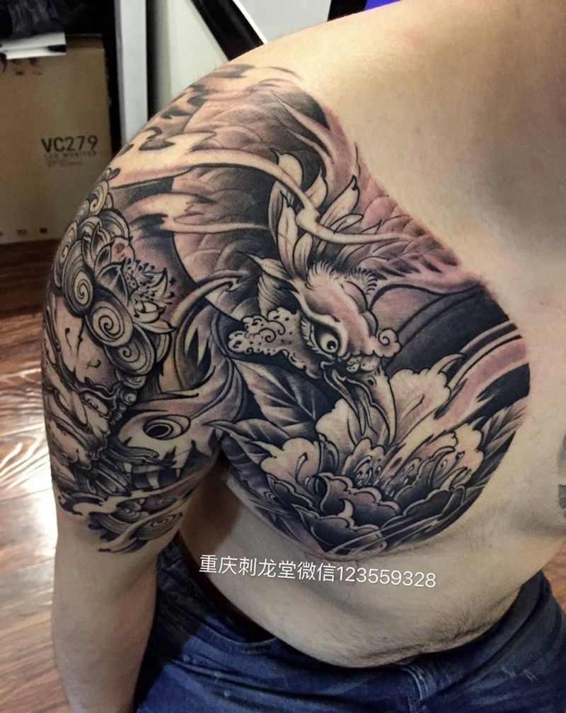 • 纹身吧推荐的披肩图腾半胛纹身图案作品展示