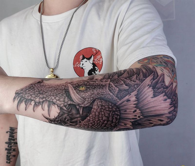 当前位置: 首页 >重庆市纹身店-欢喜社刺青纹身图案>狂暴巨兽纹身图片_手臂欧美写实纹身图案