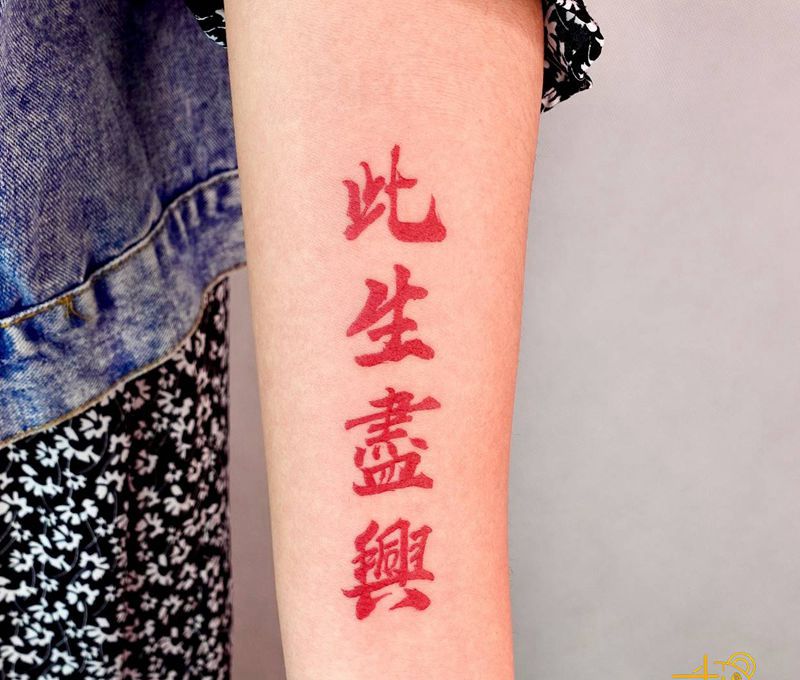 当前位置: 首页 >重庆市纹身店-欢喜社刺青纹身图案>此生尽兴纹身图片_手臂汉字纹身图案