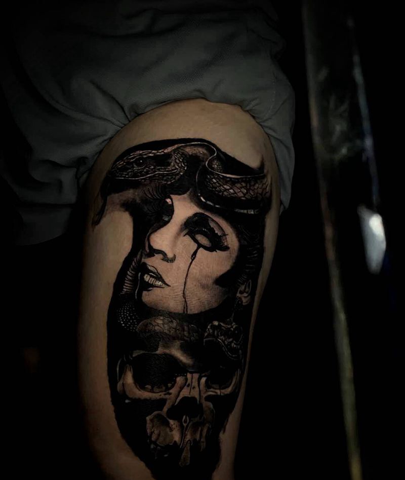 当前位置: 首页 >重庆市纹身店-仟刺青纹身图案>黑灰写实纹身图片_腿部欧美写实纹身图案