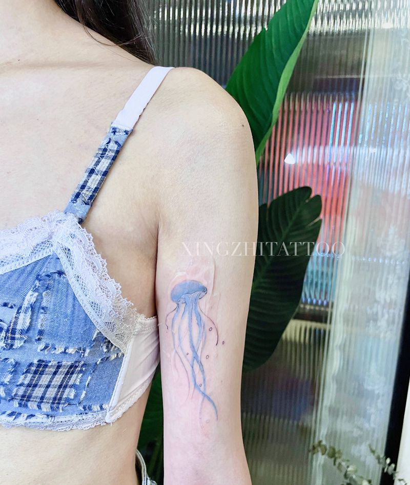 当前位置: 首页 >重庆市纹身店-行止TATTOO刺青工作室纹身图案>水母纹身图片_手臂腿部水墨水彩水母纹身图案