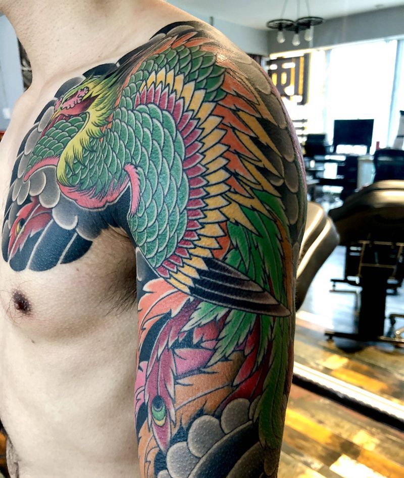 半胛凤凰纹身图片_手部胸部老传统纹身图案