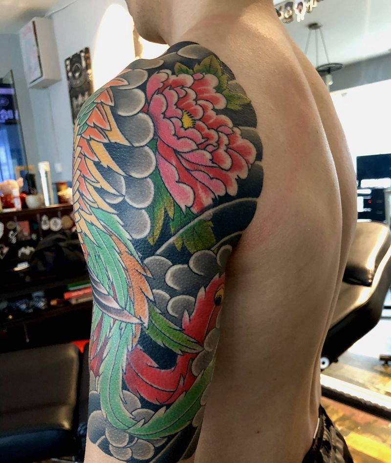 半胛凤凰纹身图片_手部胸部老传统纹身图案