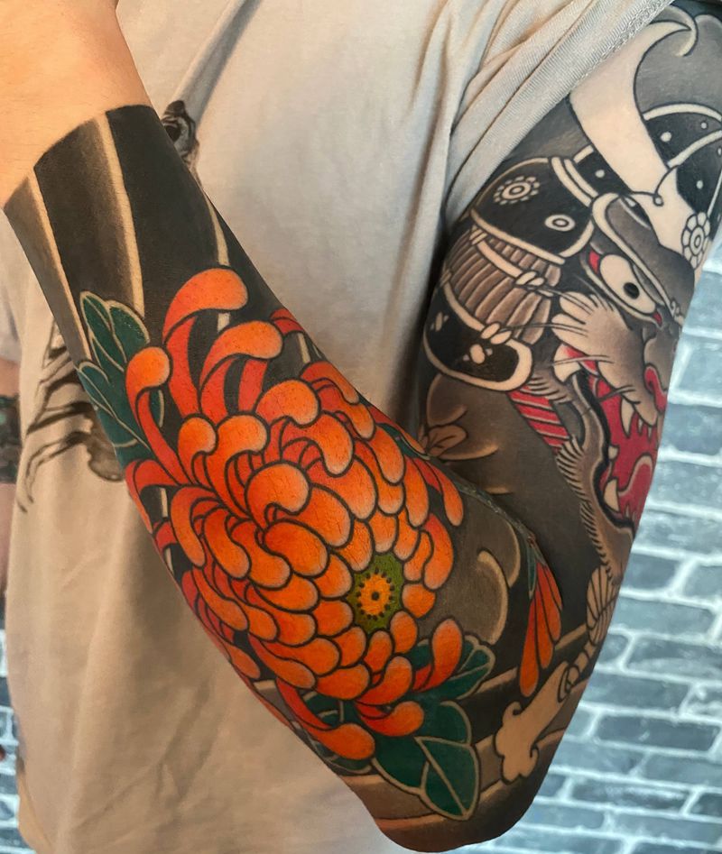 花臂局部纹身图片_手部手臂老传统菊花花臂日式传统纹身图案
