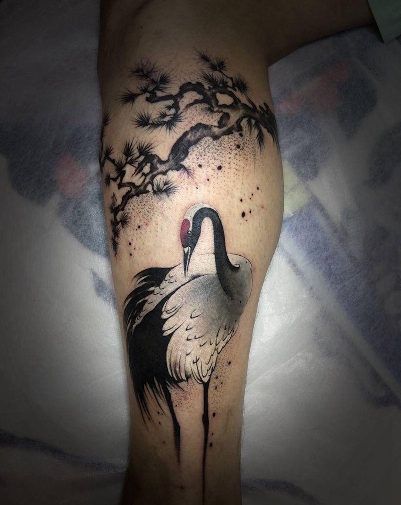 当前位置: 首页 >重庆市纹身店-歸刺青纹身图案>仙鹤纹身图片_成品脚部腿部国画动物重庆重庆刺青鹤纹身图案