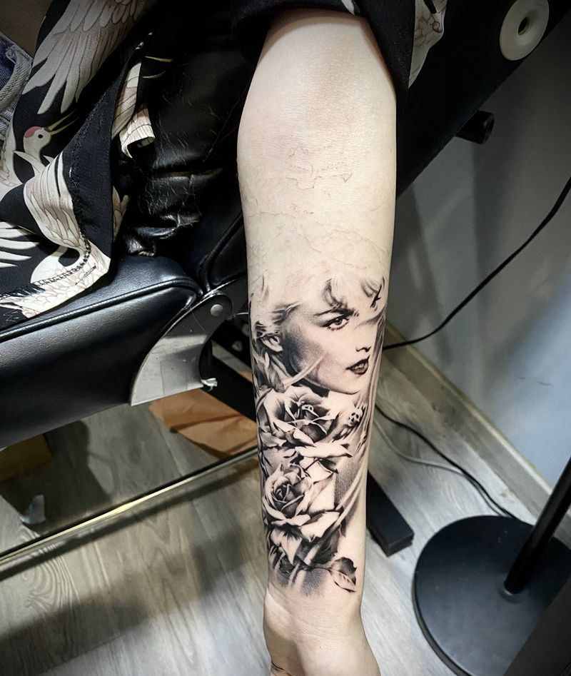 奥黛丽•赫本(未完成)纹身图片_手臂欧美写实赫本花纹身图案