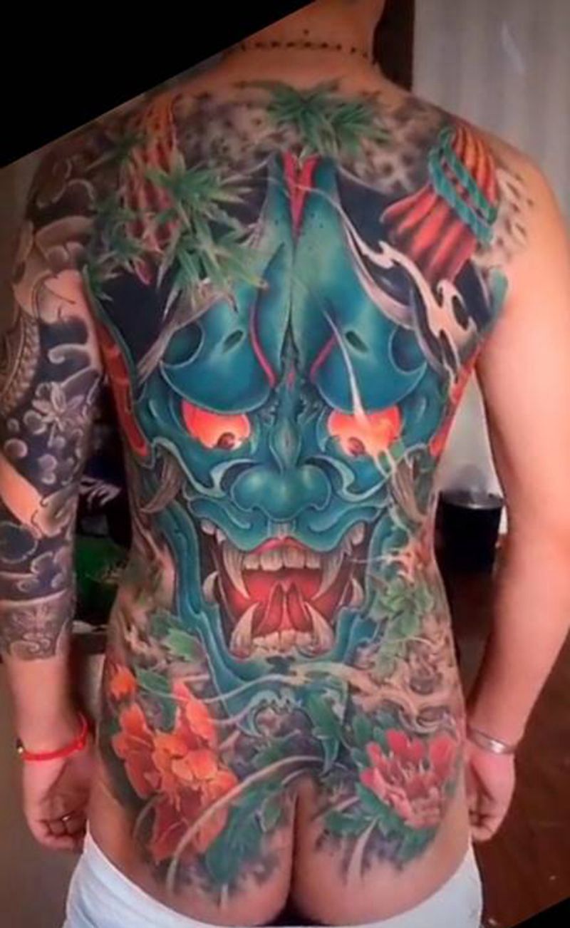 黑灰满背纹身图案
