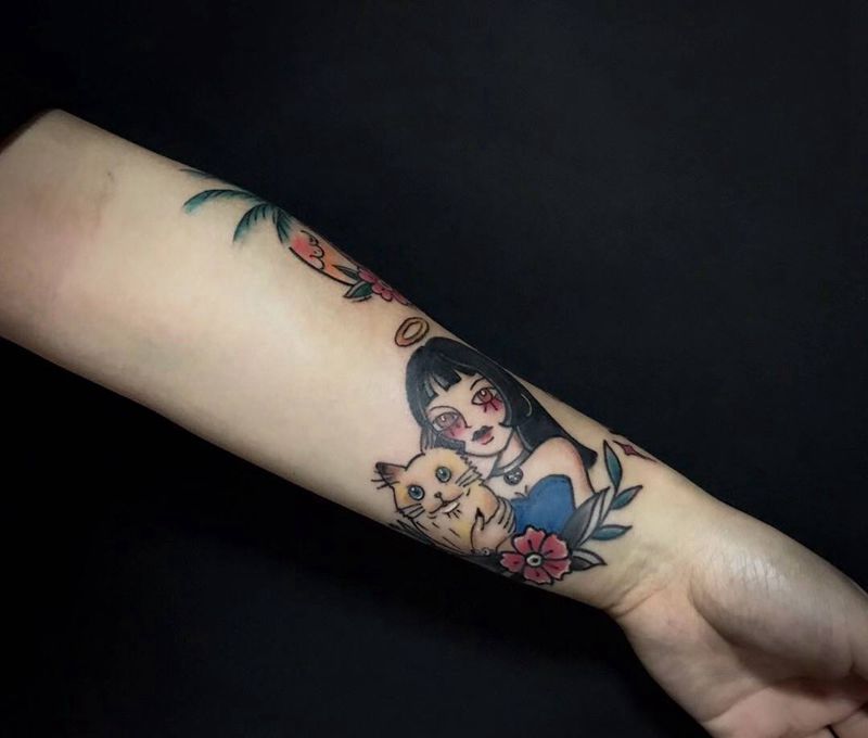 当前位置: 首页 >重庆市纹身店-刺青匠纹身图案>oldschool拼接纹身图片_手臂Old School纹身图案