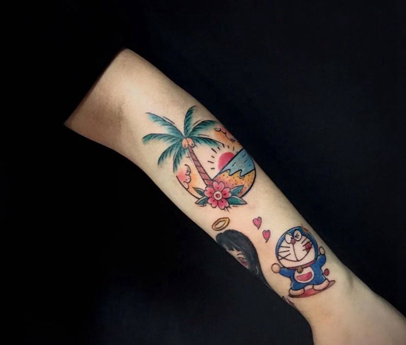 当前位置: 首页 >重庆市纹身店-刺青匠纹身图案>oldschool拼接纹身图片_手臂Old School纹身图案