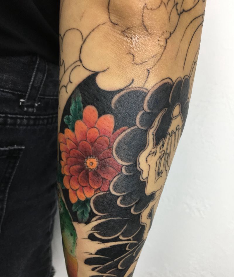 日式花臂纹身图片_手臂老传统纹身图案