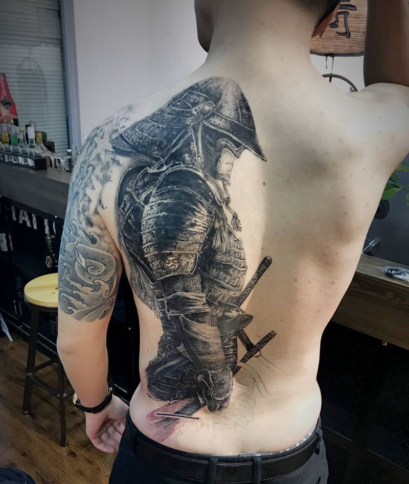 武士……纹身图片_背部欧美写实新传统纹身图案
