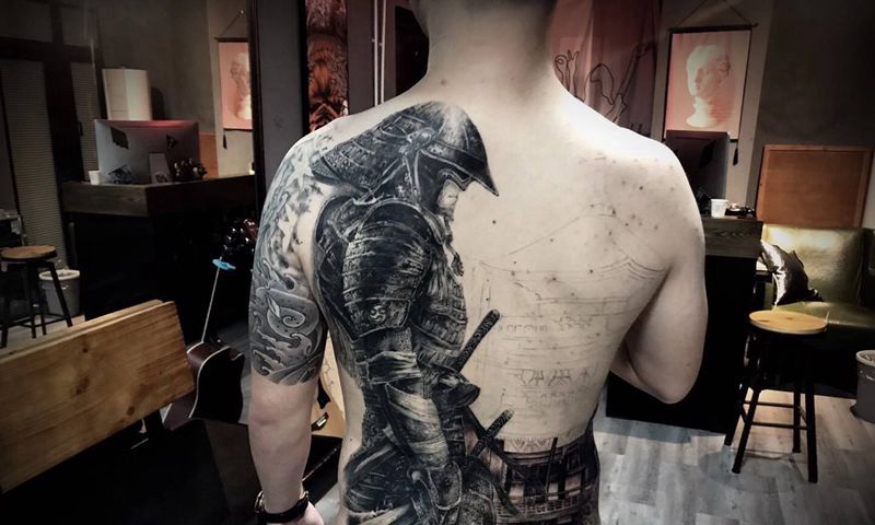 当前位置: 首页 >重庆市纹身店-刺青匠纹身图案>武士……纹身图片_背部欧美写实新传统纹身图案