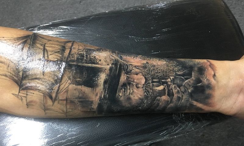 当前位置: 首页 >重庆市纹身店-刺青匠纹身图案>黑珍珠号纹身图片_手臂欧美写实纹身图案