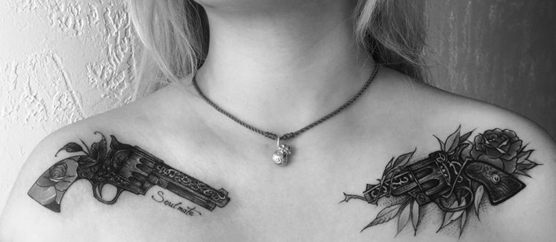 当前位置: 首页 >重庆市纹身店-刺青匠纹身图案>肩花手枪纹身图片_成品刺青匠重庆重庆店欧美清新肩部纹身图案
