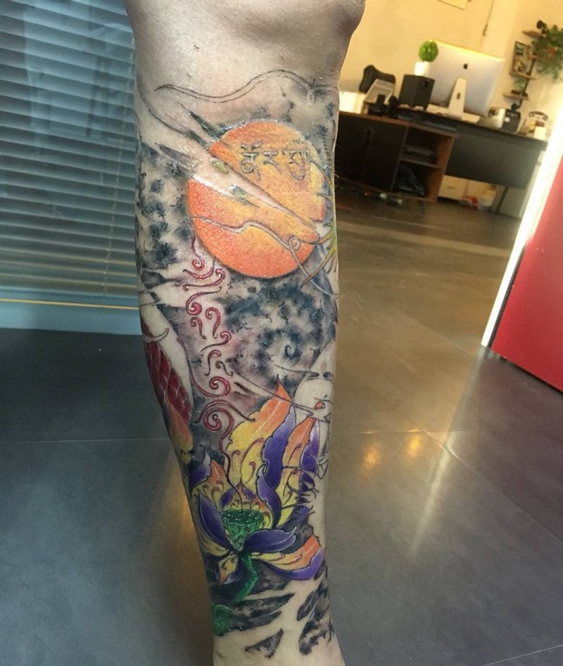 • T网红王老大花腿龙纹身图片_腿部新传统纹身图案