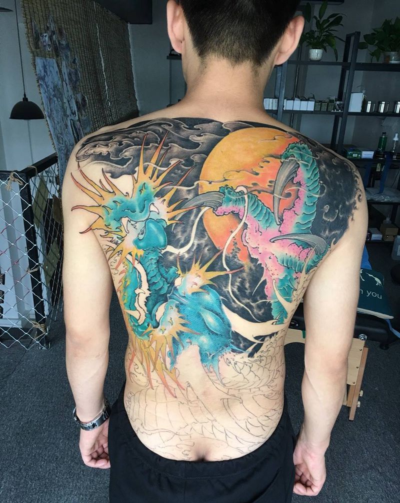 • T云龙九郎纹身图片_背部老传统云龙九郎纹身图案