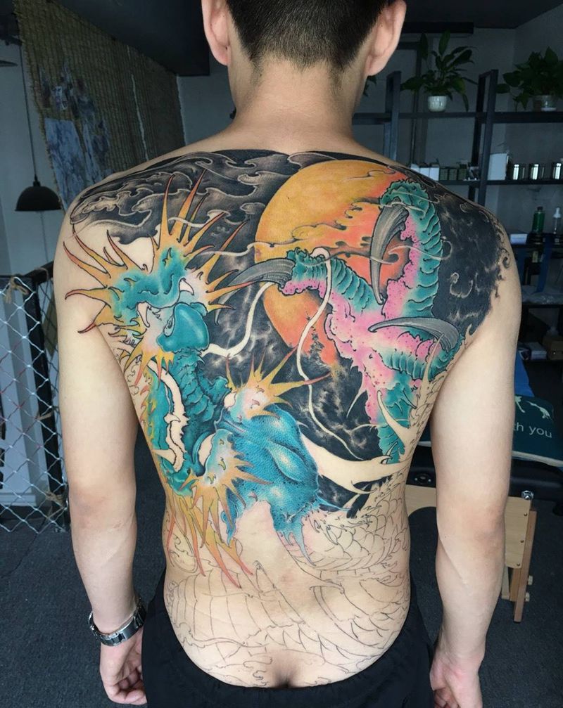 • T云龙九郎纹身图片_背部老传统云龙九郎纹身图案