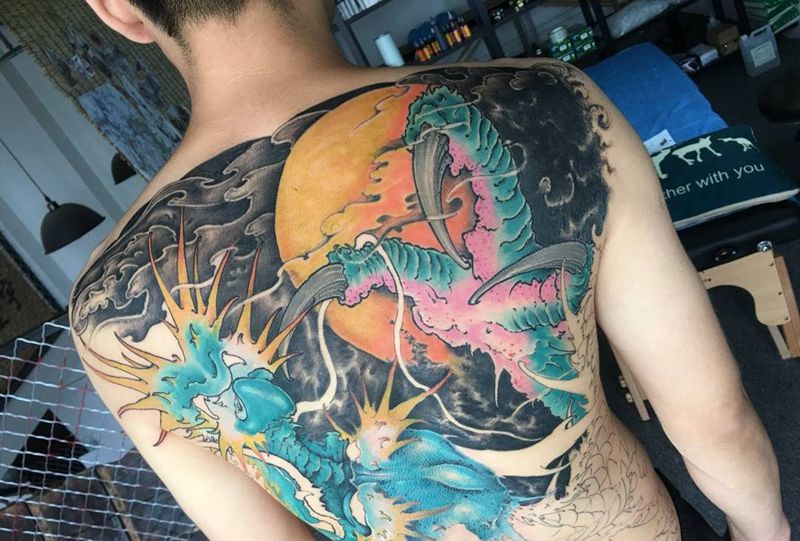 • T云龙九郎纹身图片_背部老传统云龙九郎纹身图案