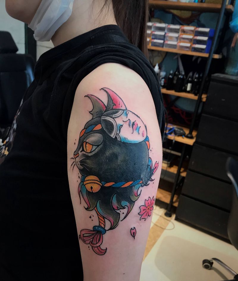 当前位置: 首页 >重庆市纹身店-刺青匠纹身图案>猫纹身图片_手臂Old SchoolNew School纹身图案