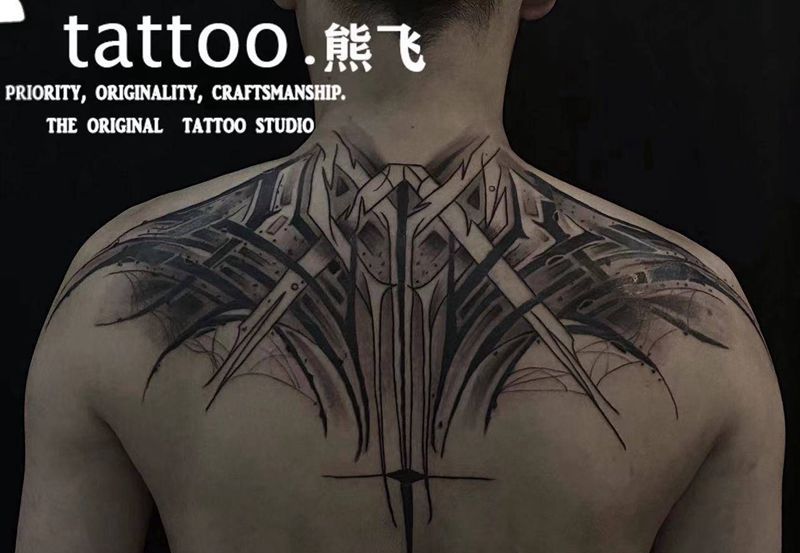黑灰满背纹身图案