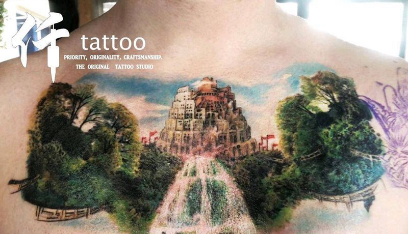 黑灰满背纹身图案