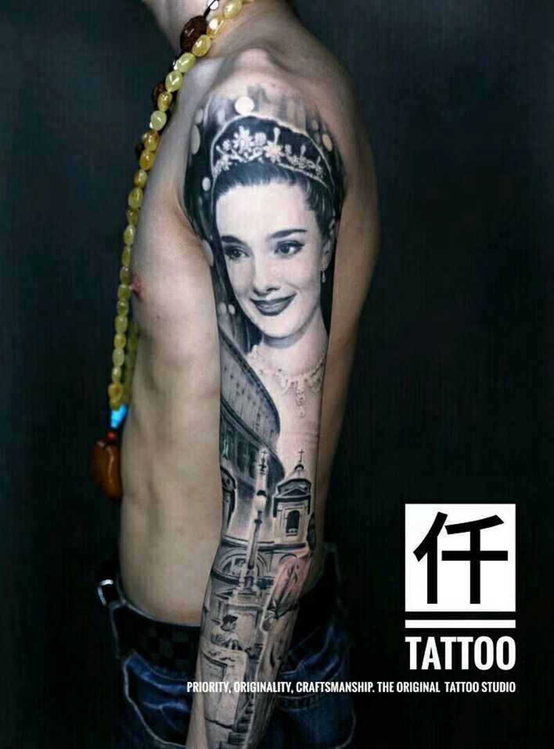 当前位置: 首页 >重庆市纹身店-仟刺青纹身图案>原创欧美黑灰写实罗马假日纹身图片_手臂欧美写实纹身图案