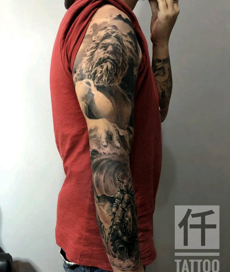 当前位置: 首页 >重庆市纹身店-仟刺青纹身图案>原创波塞冬拼接欧美黑灰写实花臂纹身图片_手臂欧美写实纹身图案