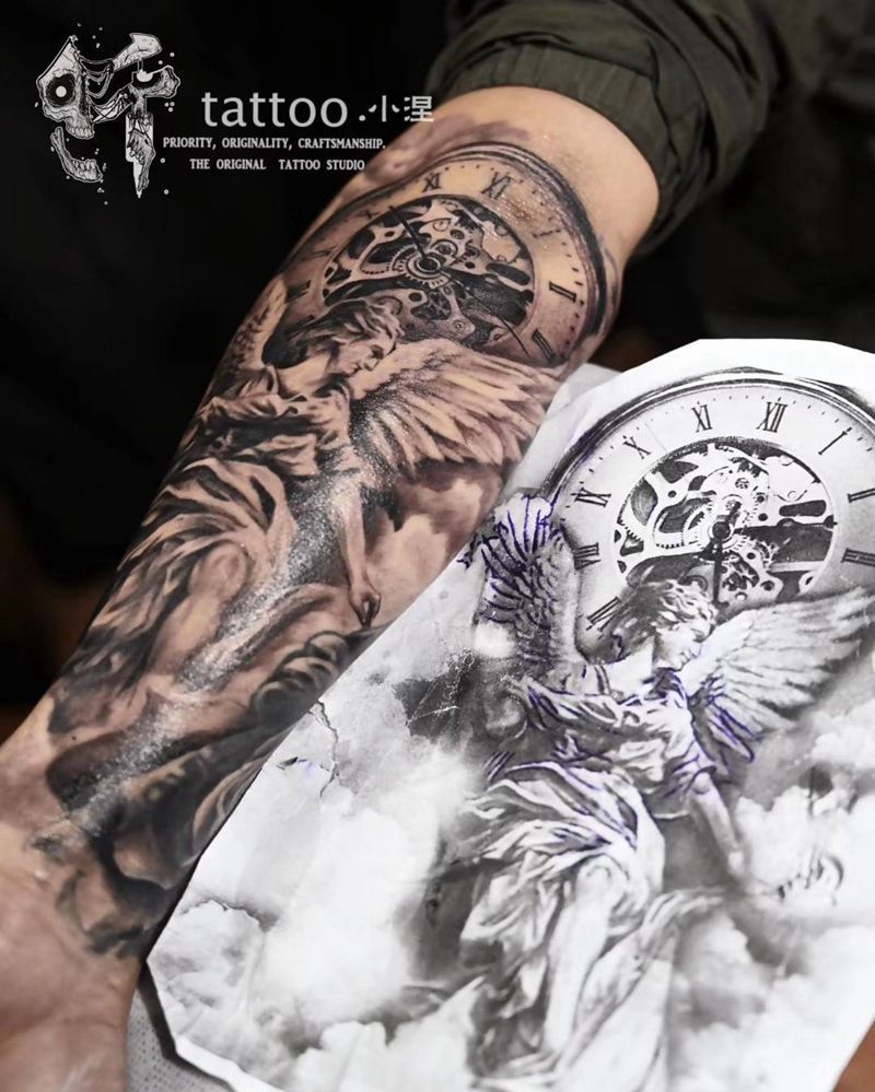 当前位置: 首页 >重庆市纹身店-仟刺青纹身图案>天使与表纹身图片_手臂欧美写实纹身图案