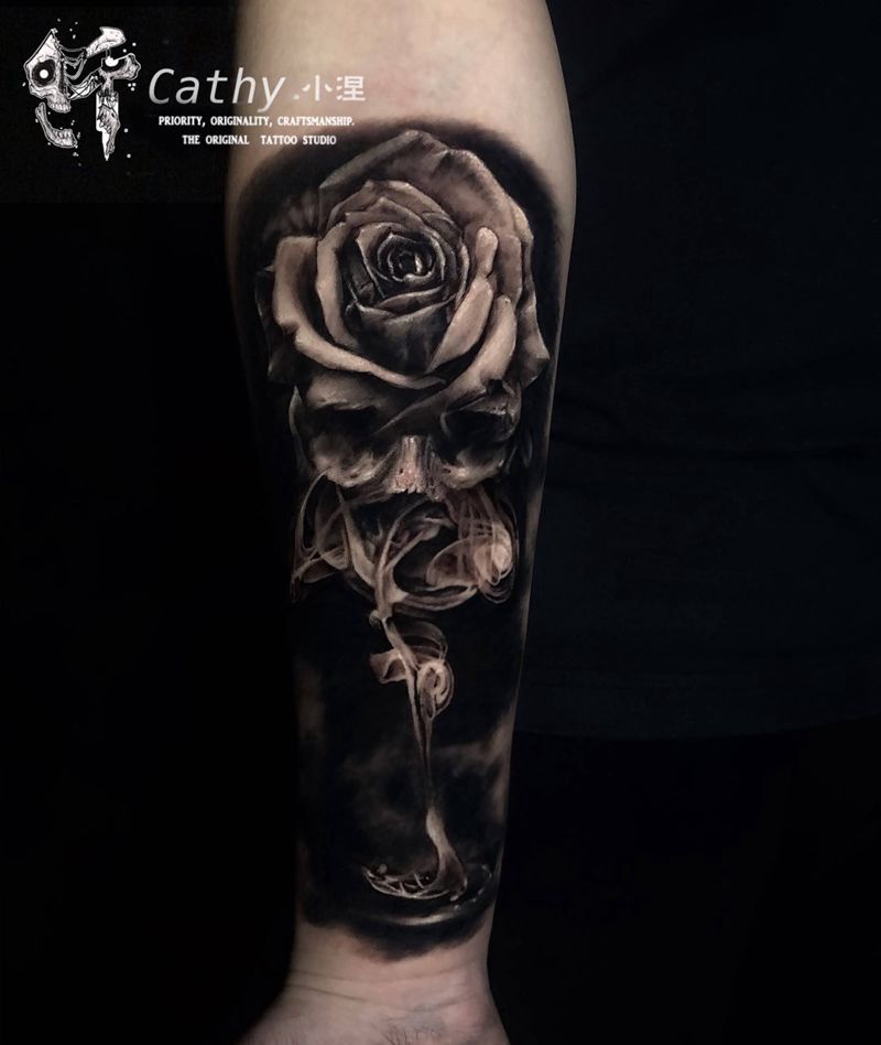 当前位置: 首页 >重庆市纹身店-仟刺青纹身图案>骷髅玫瑰纹身图片_手臂欧美写实暗黑纹身图案