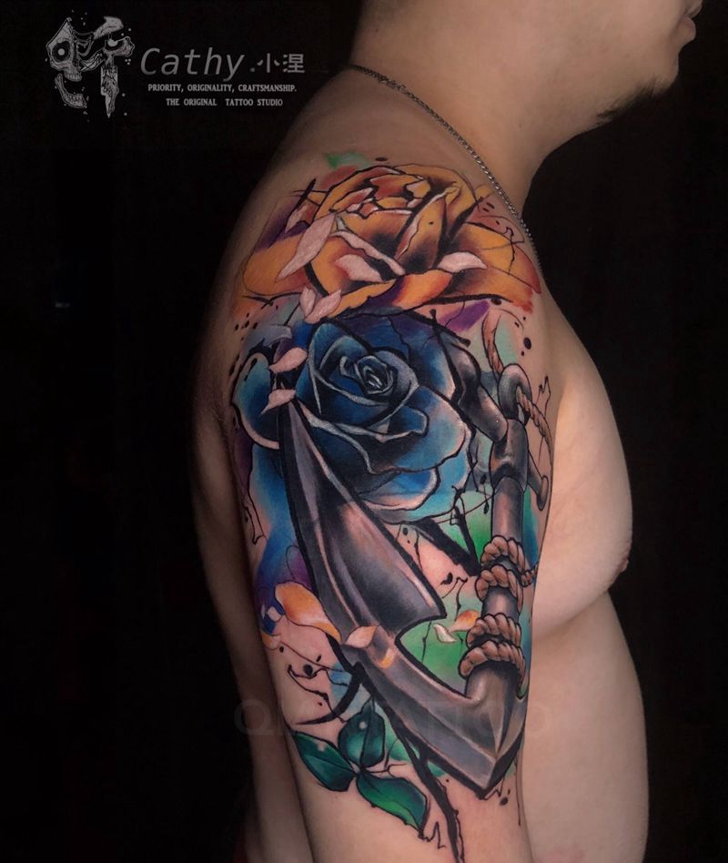 原创设计遮盖图纹身图片_手臂水彩New School重庆遮盖原创设计纹身图案
