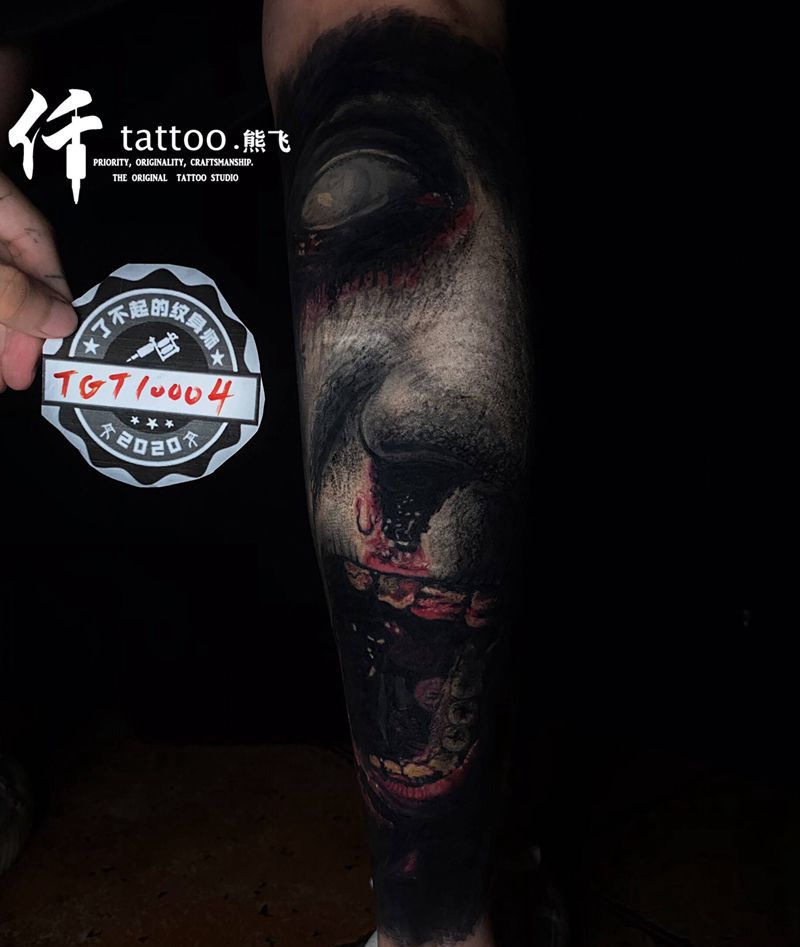 当前位置: 首页 >重庆市纹身店-仟刺青纹身图案>暗黑写实纹身图片_腿部欧美写实重庆暗黑血腥纹身图案