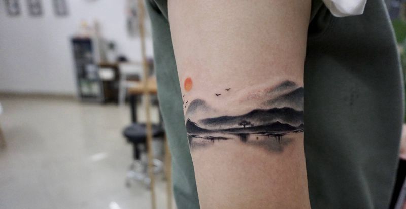 水墨纹身图片_手臂水墨纹身图案